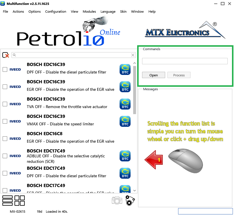 The Commands area allows you to upload a file either by dragging and dropping it or by using the Open button.