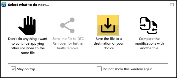 Note: Once the solutions have been processed, a selection window appears for exporting the modified file. The Save file to a destination of your choice icon has the same function as the File -> Save As... command.