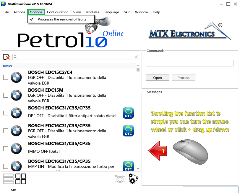 By clicking on Options, as you can see in figure 1, you can disable or re-enable the automatic removal of faults (DTCs) from the solutions to be processed.